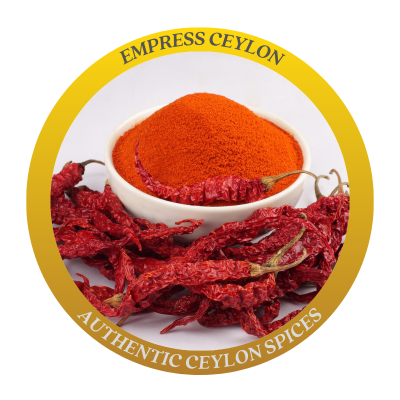 Ceylon chilli powder is sourced from sun-dried, handpicked red chillies grown in Sri Lanka’s fertile fields. Known for its bright color and bold heat, this spice adds a fiery kick to your dishes.