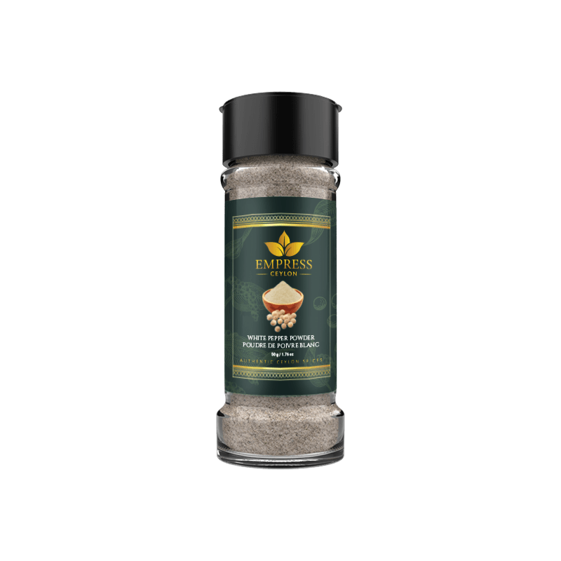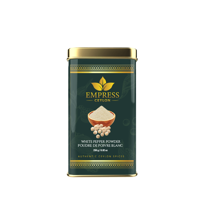 Ceylon white pepper powder is made from sun dried, fully ripened peppercorns that are carefully processed to preserve their delicate, earthy heat.